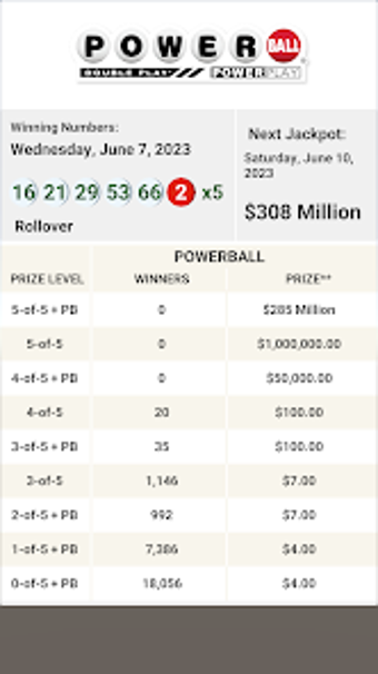 Powerball Resultsは、Lottery Appsによって開発されたAndroidユーザー向けのモバイルアプリです。このアプリは、最新のPowerball宝くじの結果を追跡してアクセスしたい個人にとって便利なツールとして機能します。ユーザーは、最新の当選番号、ジャックポット額、賞金の内訳について、スマートフォンで簡単に情報を入手できます。このアプリは、ユーザーが抽選のスリルを逃さないようにし、Powerballファンが宝くじの世界とつながり続けるための中心的な拠点を提供することを目指しています。
